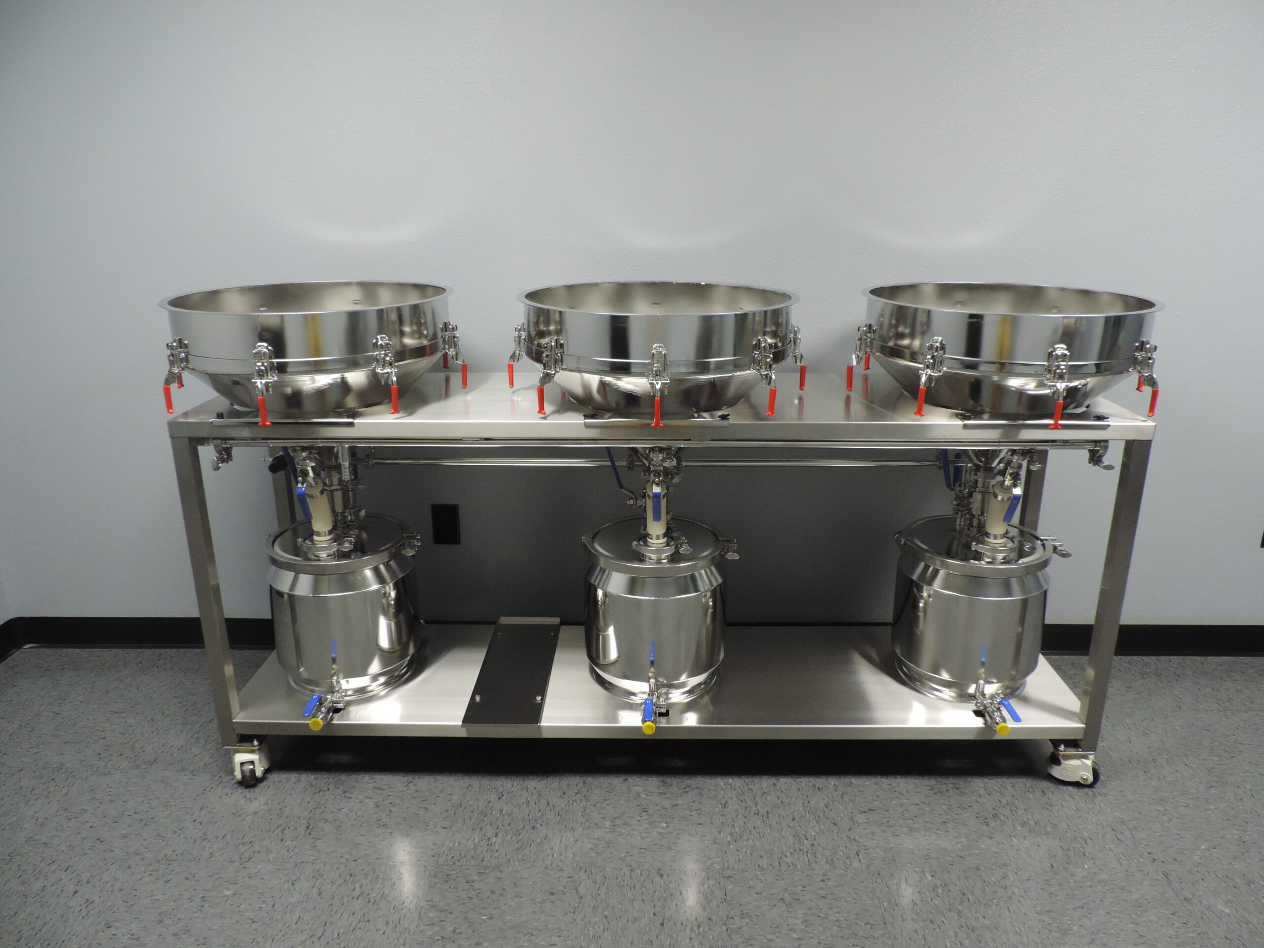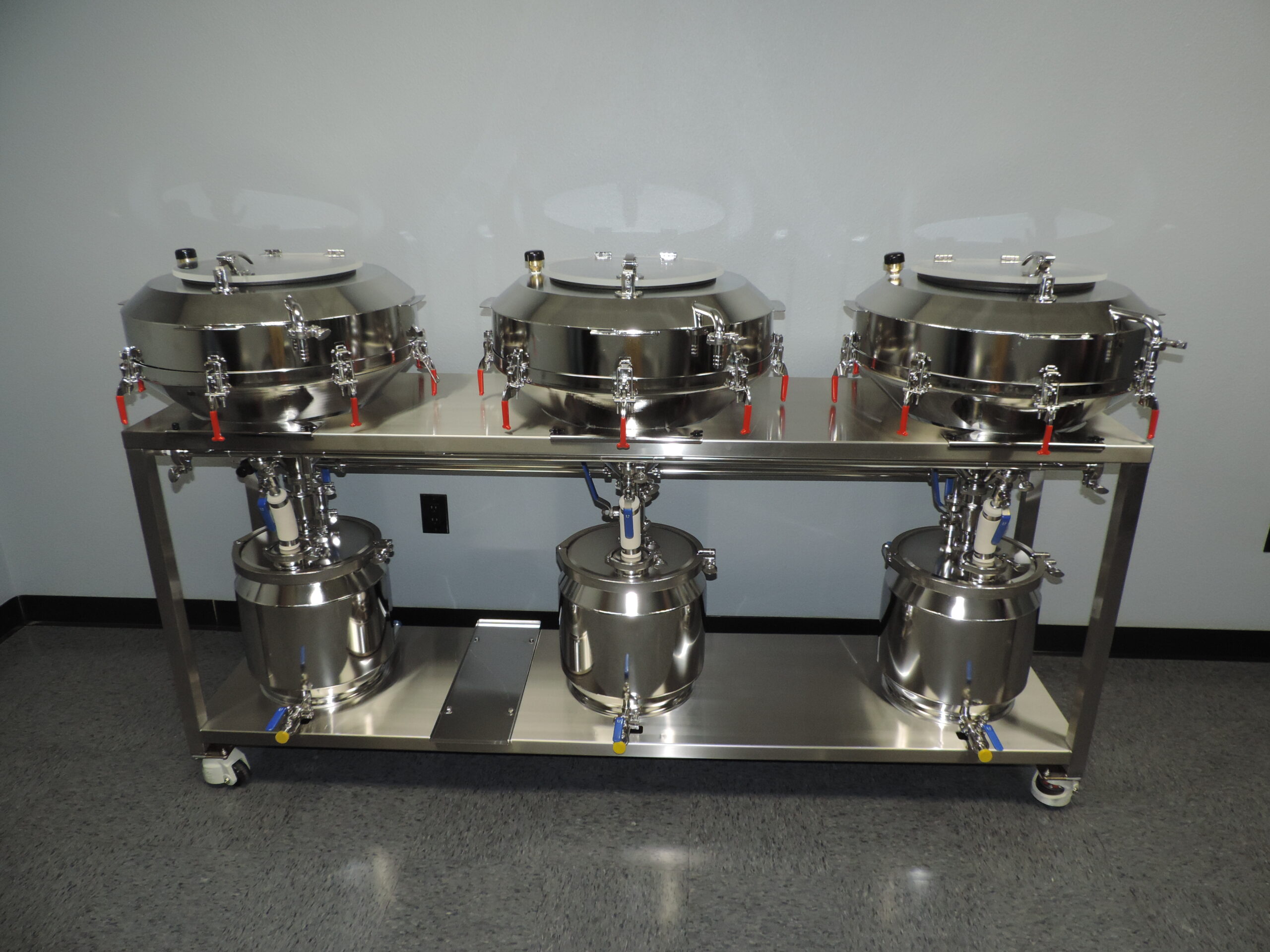 Filters more than the competition! Our filter table comes complete with an air purge system to evacuate your filtered product right in to your next process. Whether that is a Roto Vap, or even daisy chain them together for continued filtering. Each filter is valved independent of each other and can run all at the same time or independent of one another.